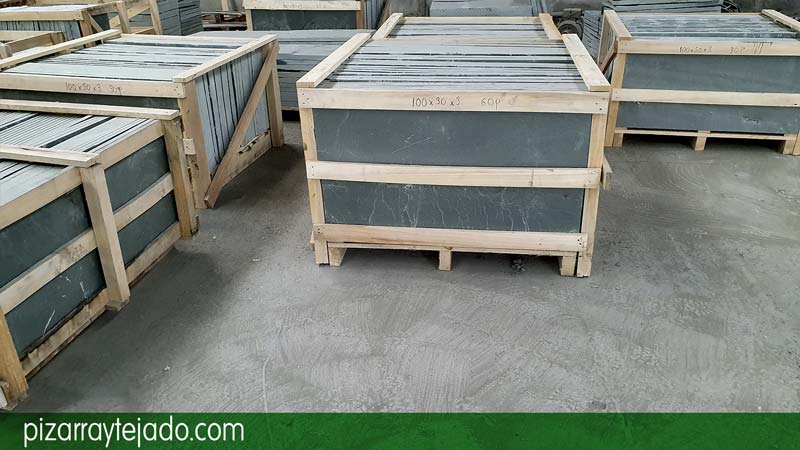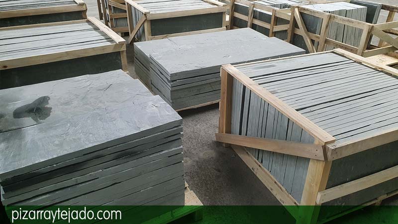Losa, placa, plaqueta y baldosa de pizarra verde pol para suelos, revestimientos, jardín y fachadas.